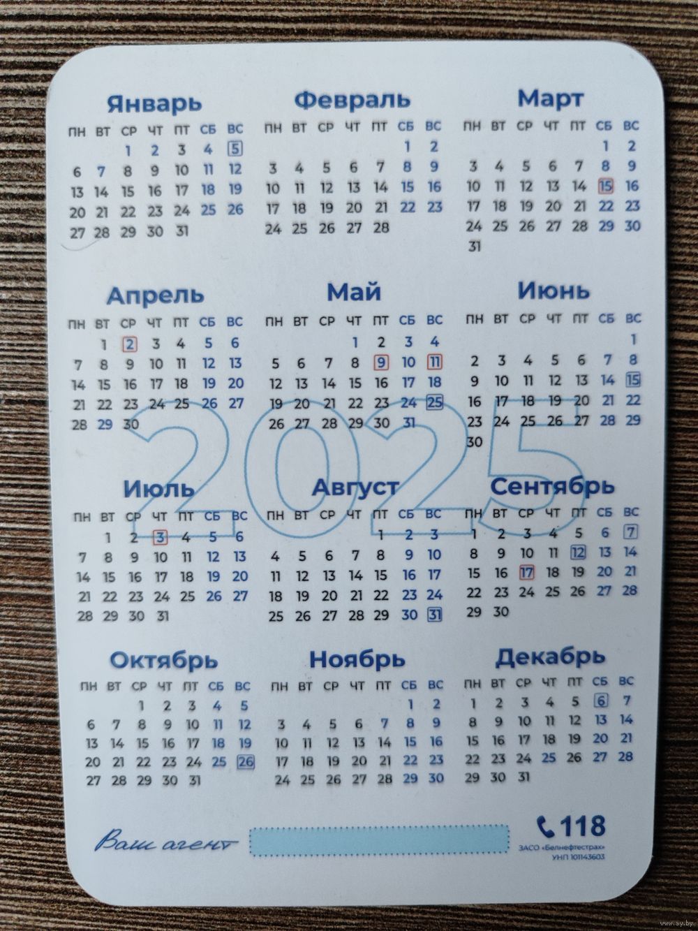 Календарик Белнефтестрах 2025г
