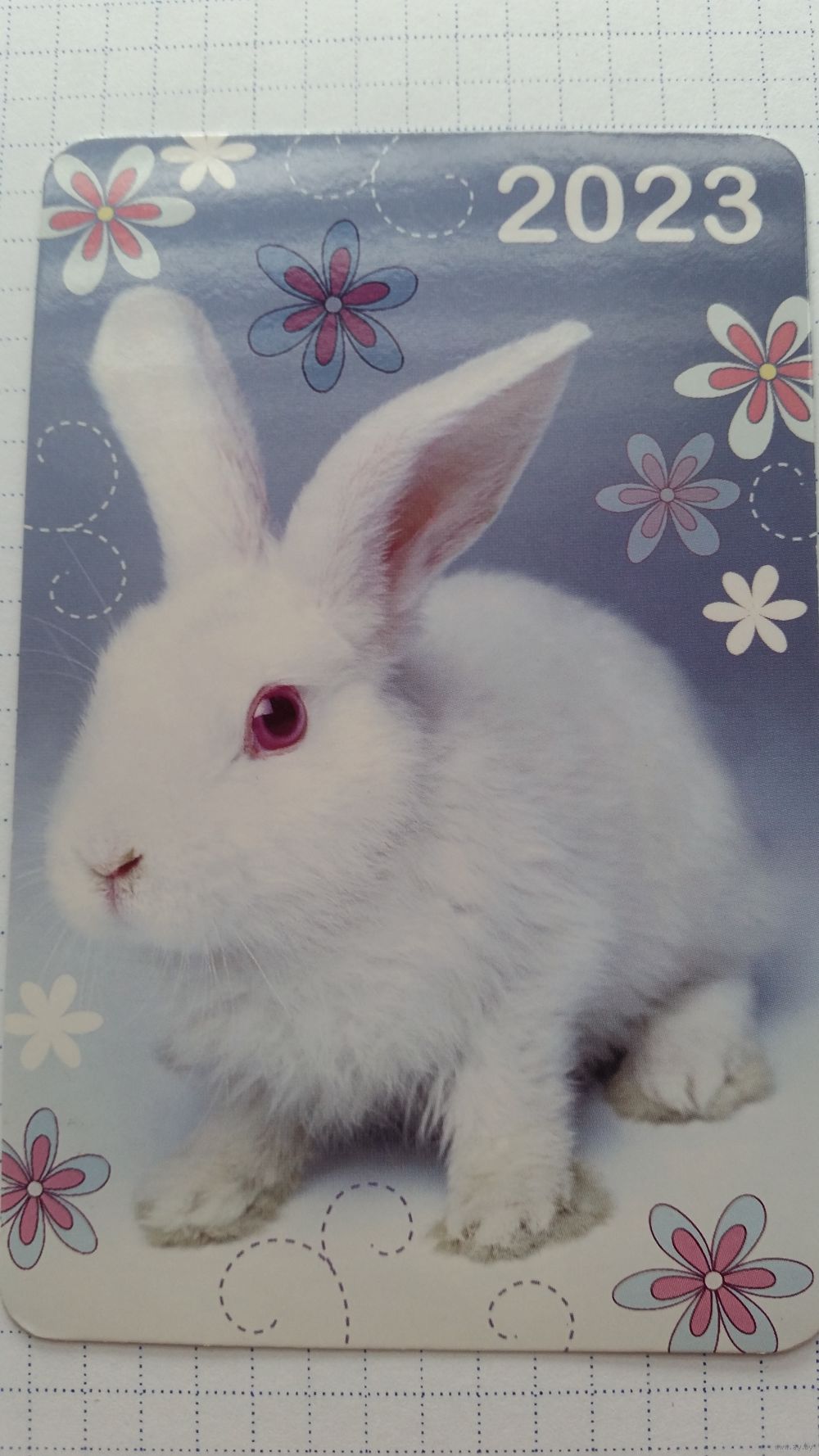 Календарик. Белый заяц в ромашках.2023