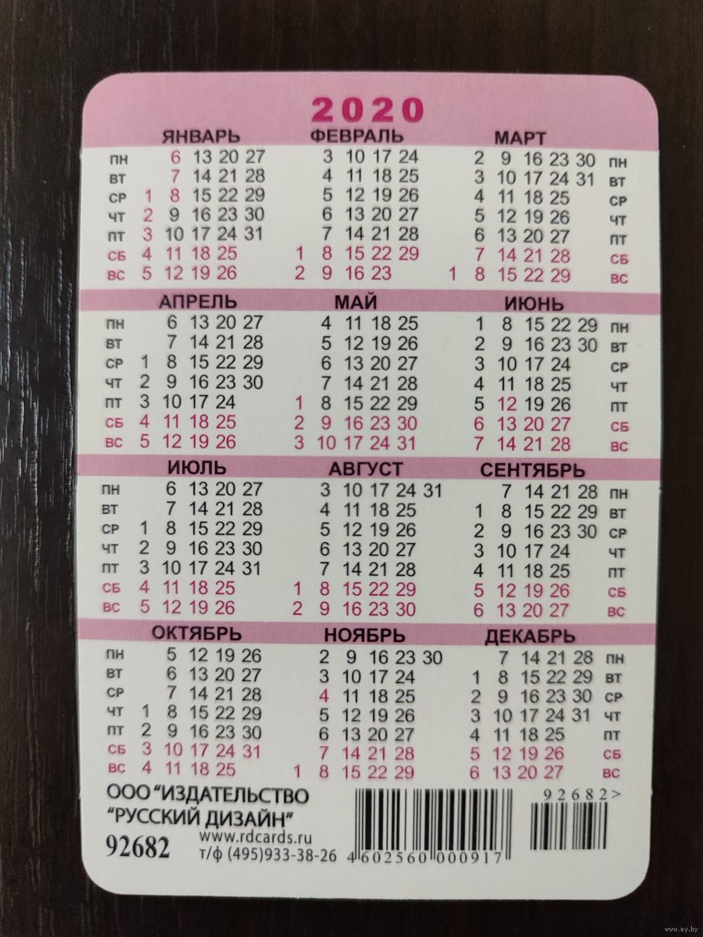 Календарик Букет 2020г