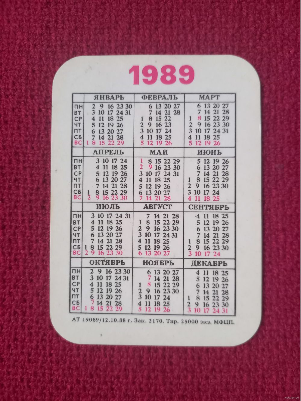 Календарик Часовой завод ЛУЧ 1989 г.