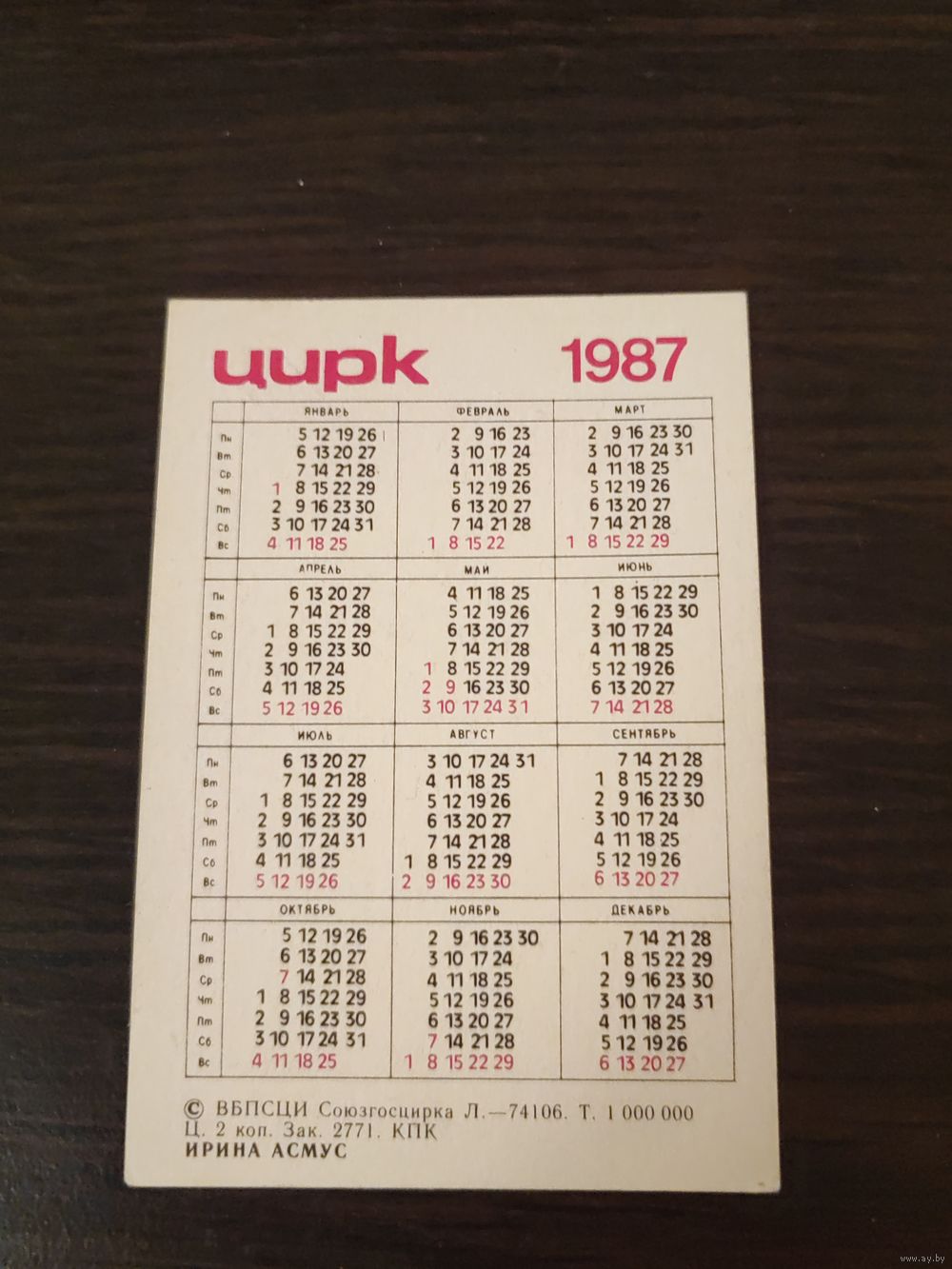 Календарик,цирк,ириска