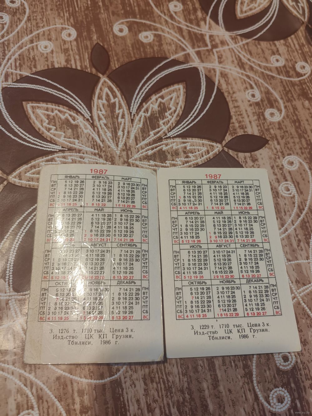 Календарик,цветы,грузия,1987