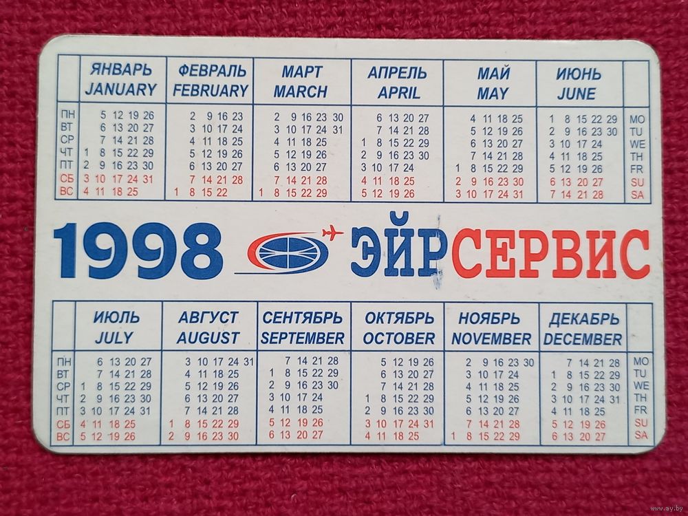 Календарик ЭйрСервис. 1998 г.