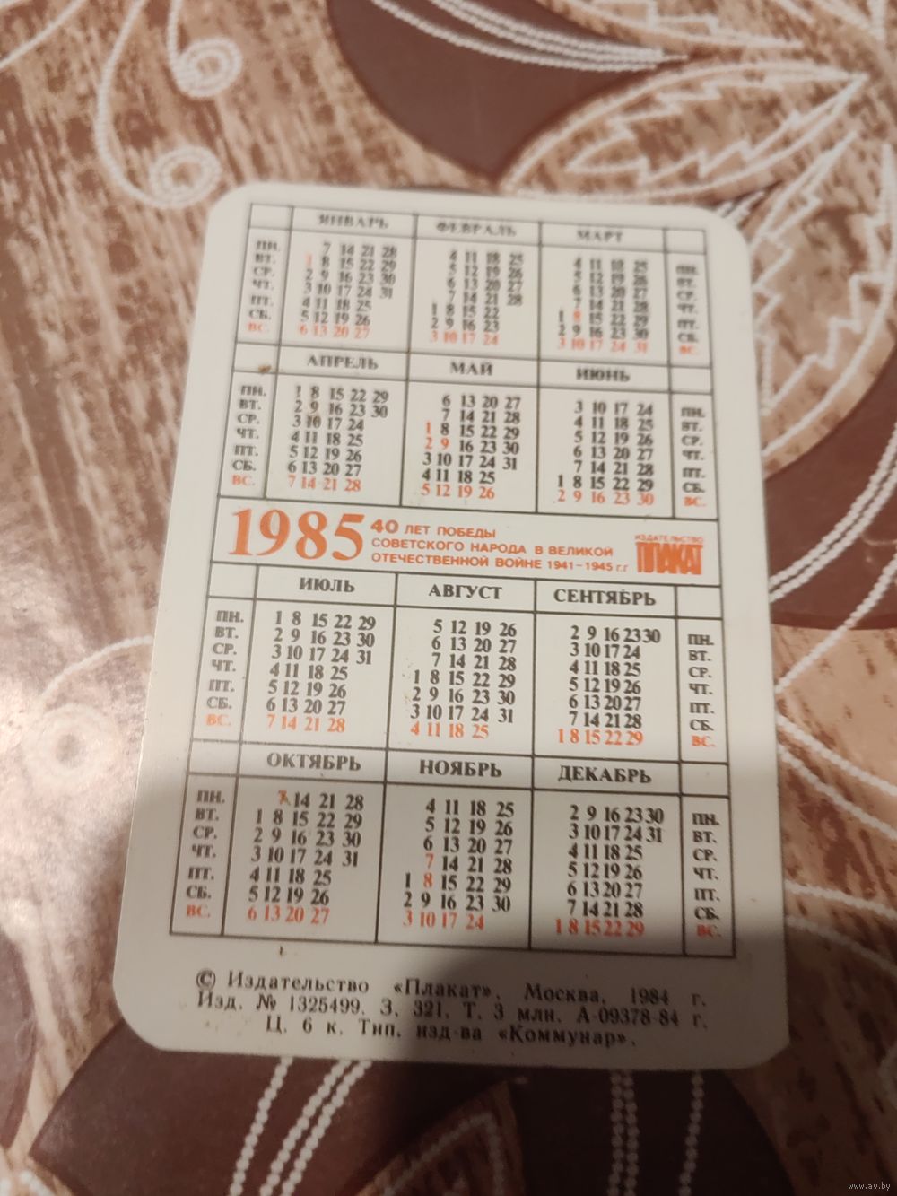 Календарик,города,1985
