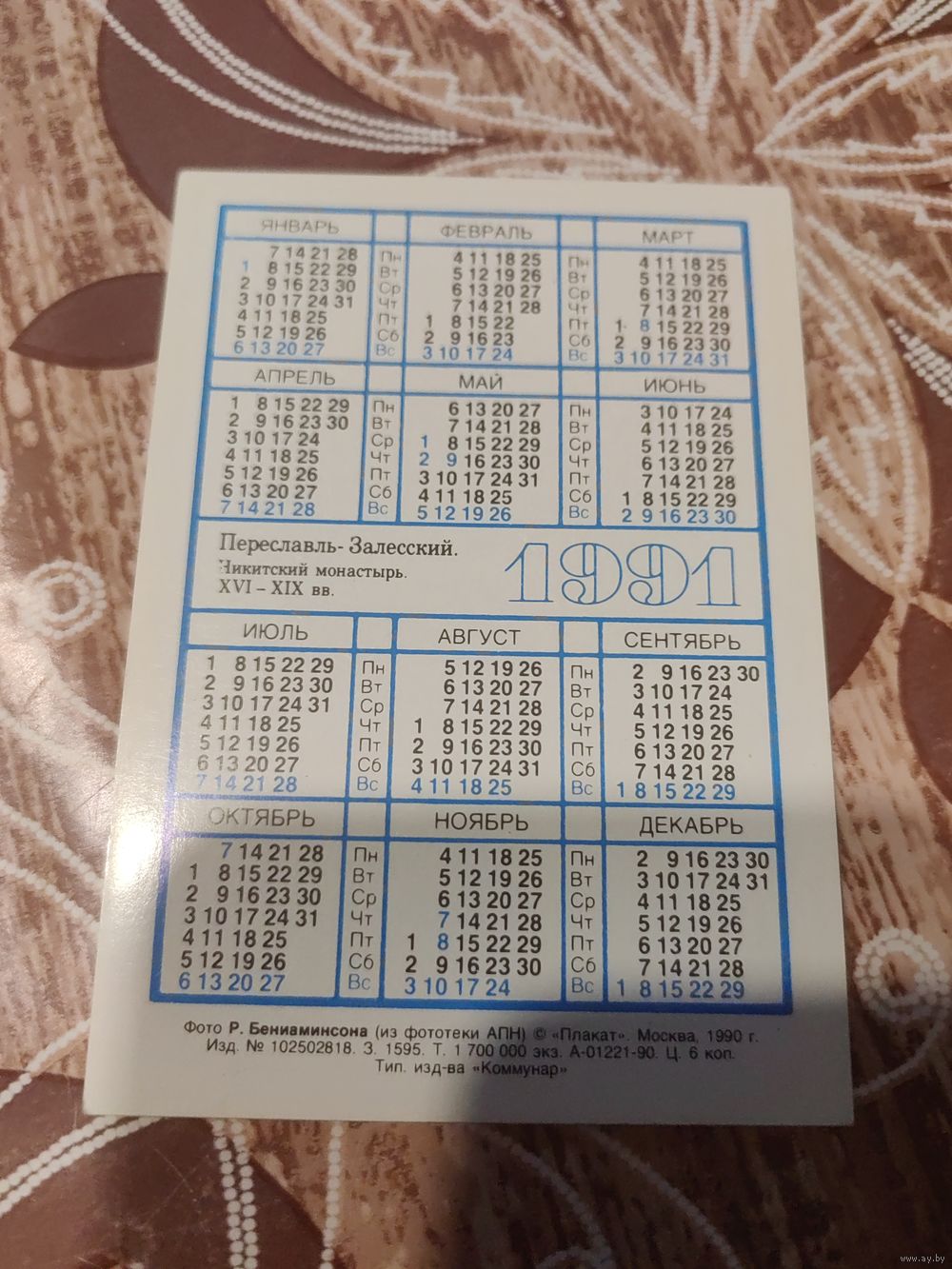 Календарик,города,1991