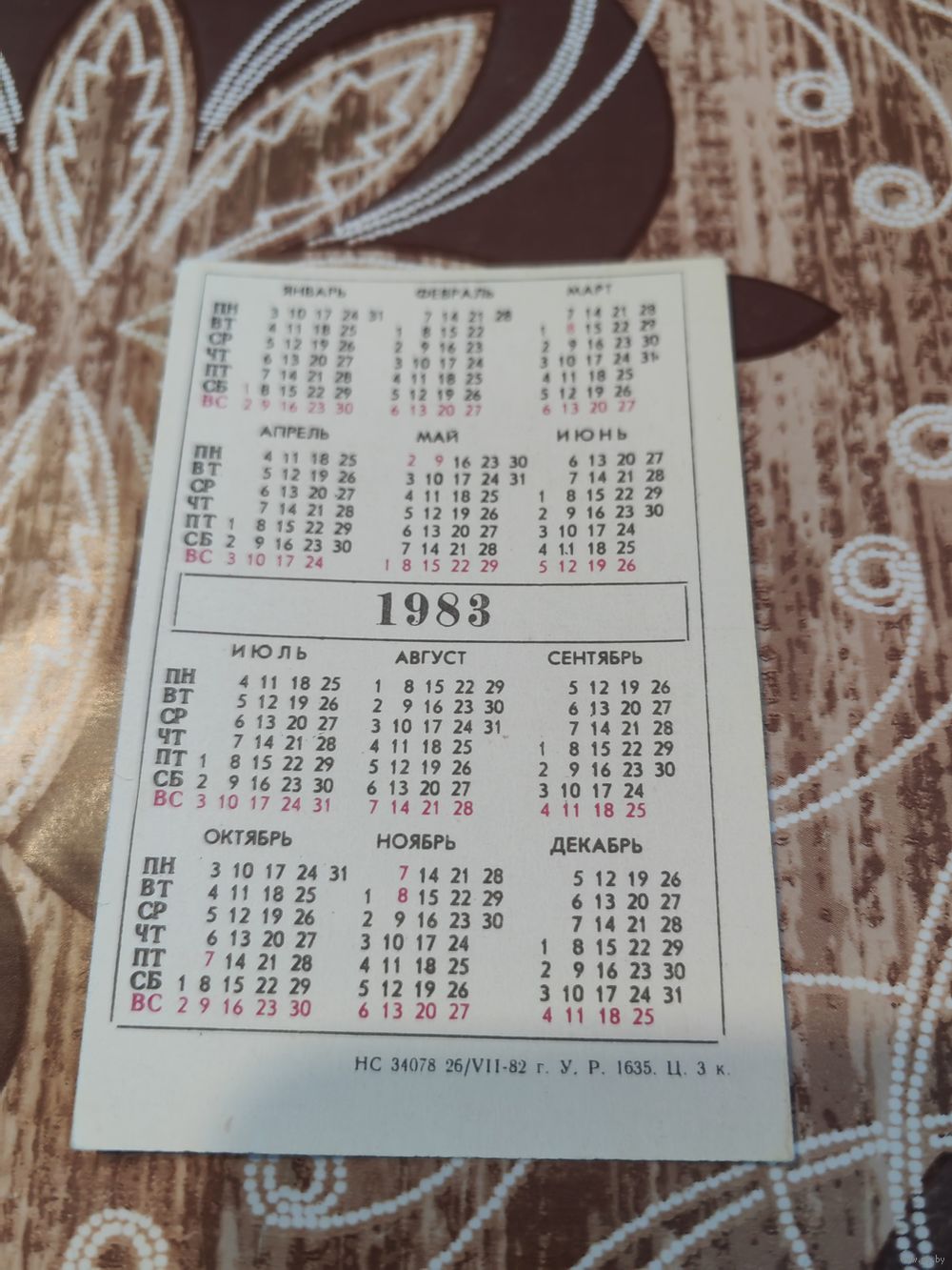 Календарик,города ссср,1983