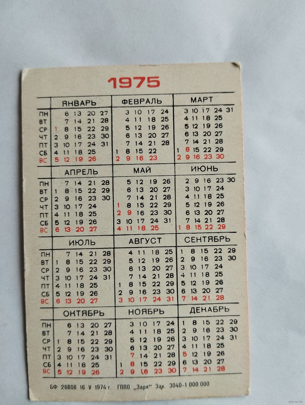 Календарик карманный 1975 Страхование средств транспорта . Главное управление страхования Украинской ССР. 16.05.1974.ГППО"Заря"