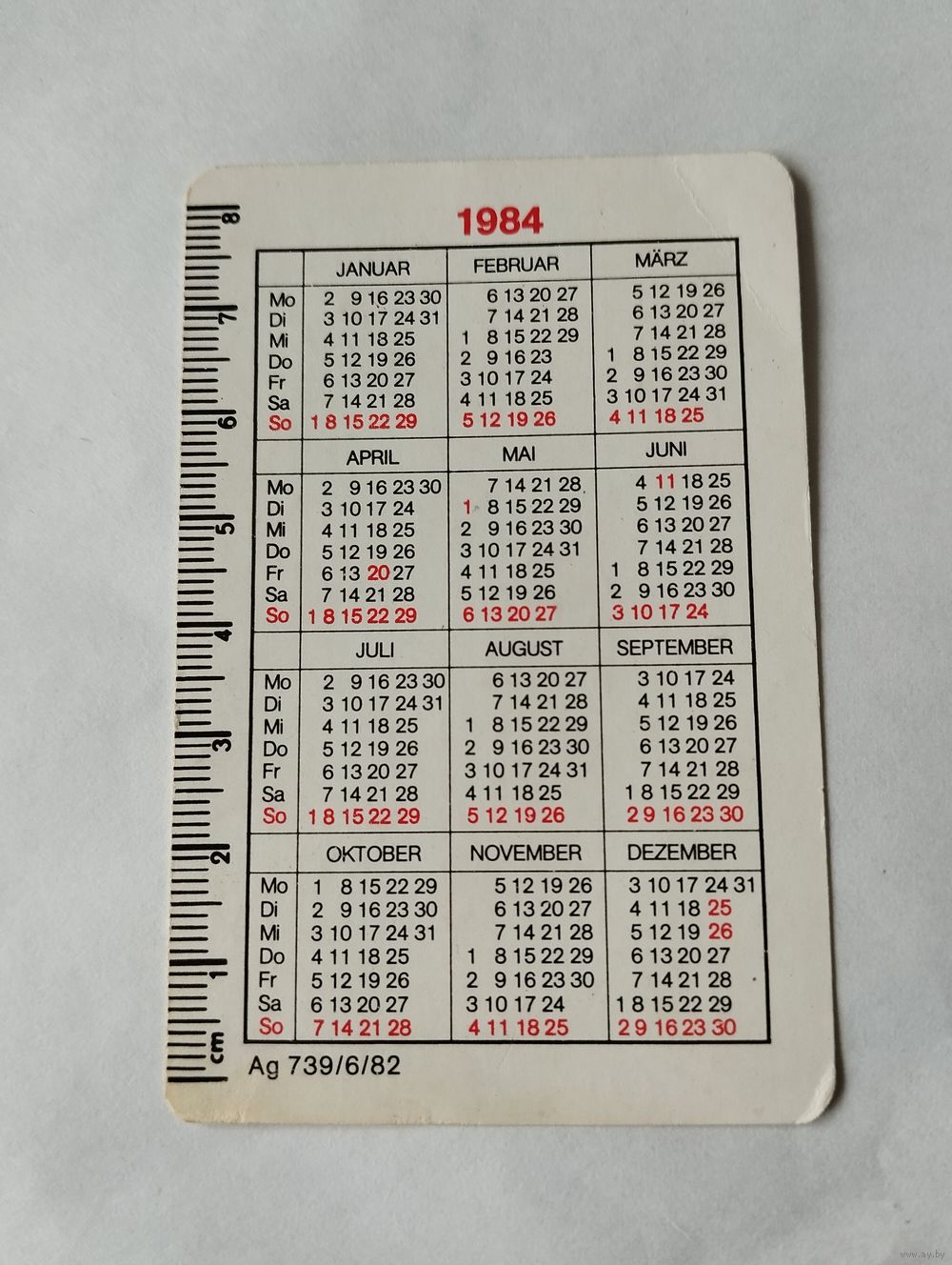 Календарик карманный, 1984г, напечатан в ГДР , комбайн Fortschritt Landmaschinen DDR-8355. Календарик в отличном состоянии.