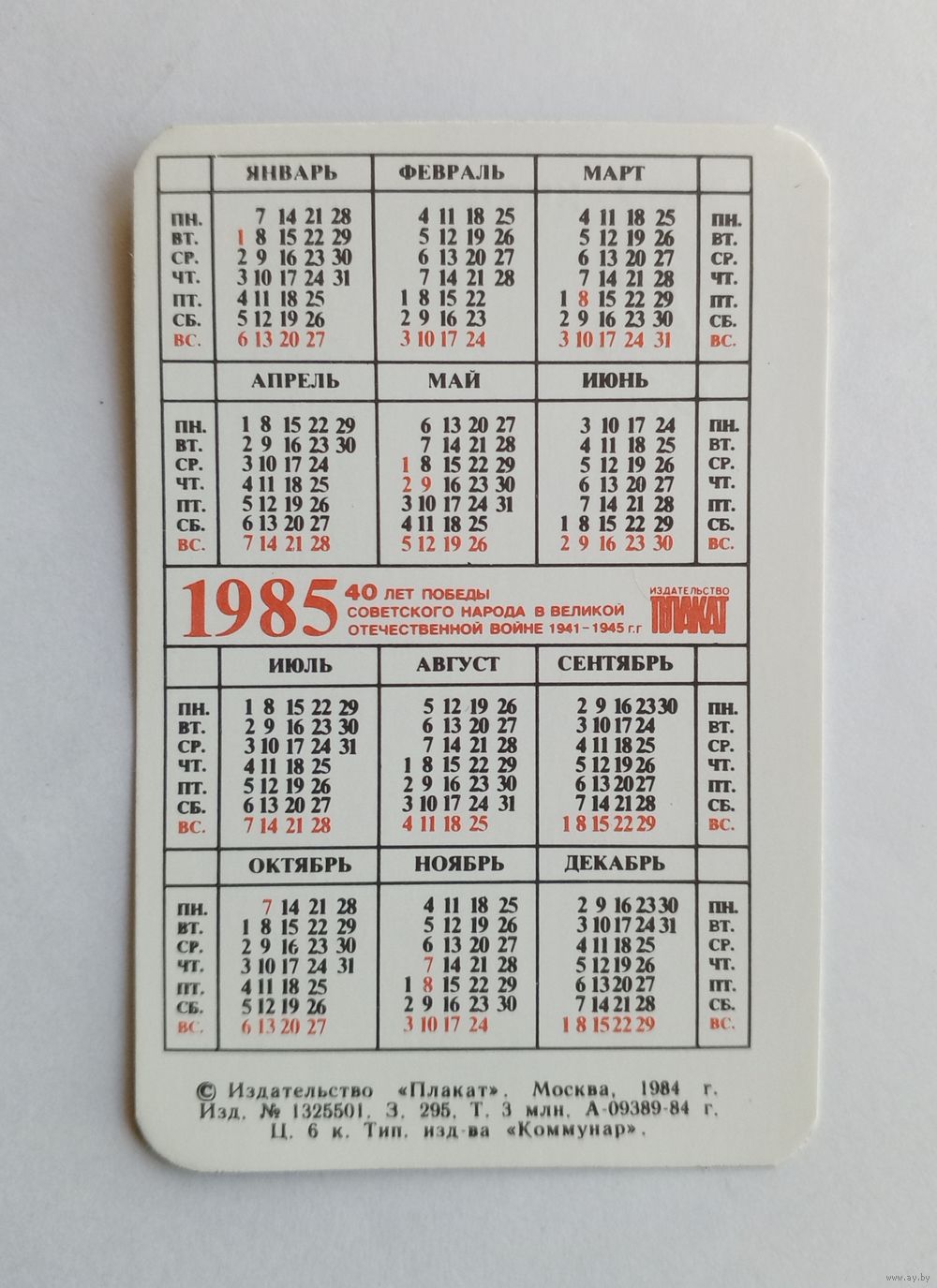 Календарик карманный 1985 год. Киев