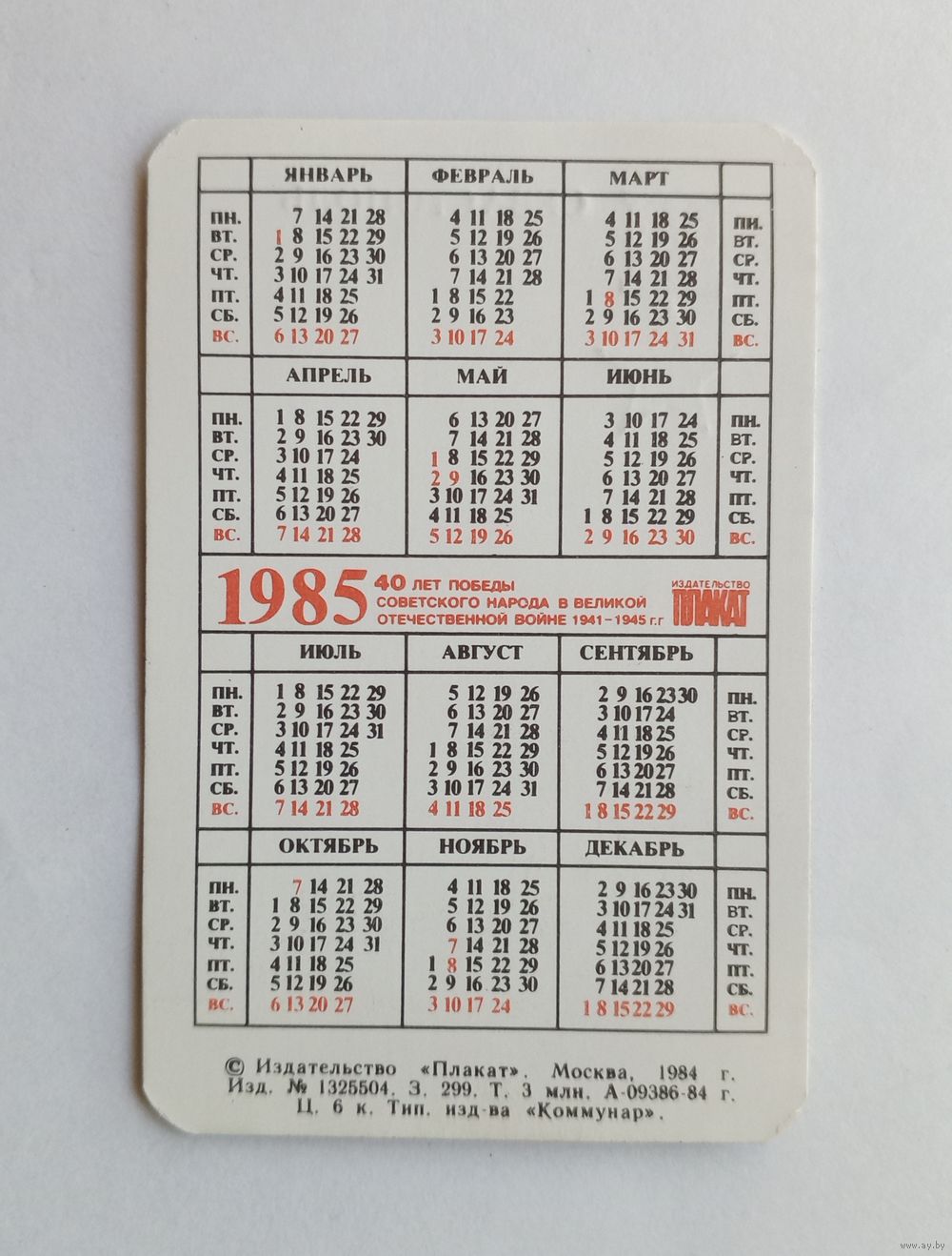 Календарик карманный 1985 год. Севастополь.