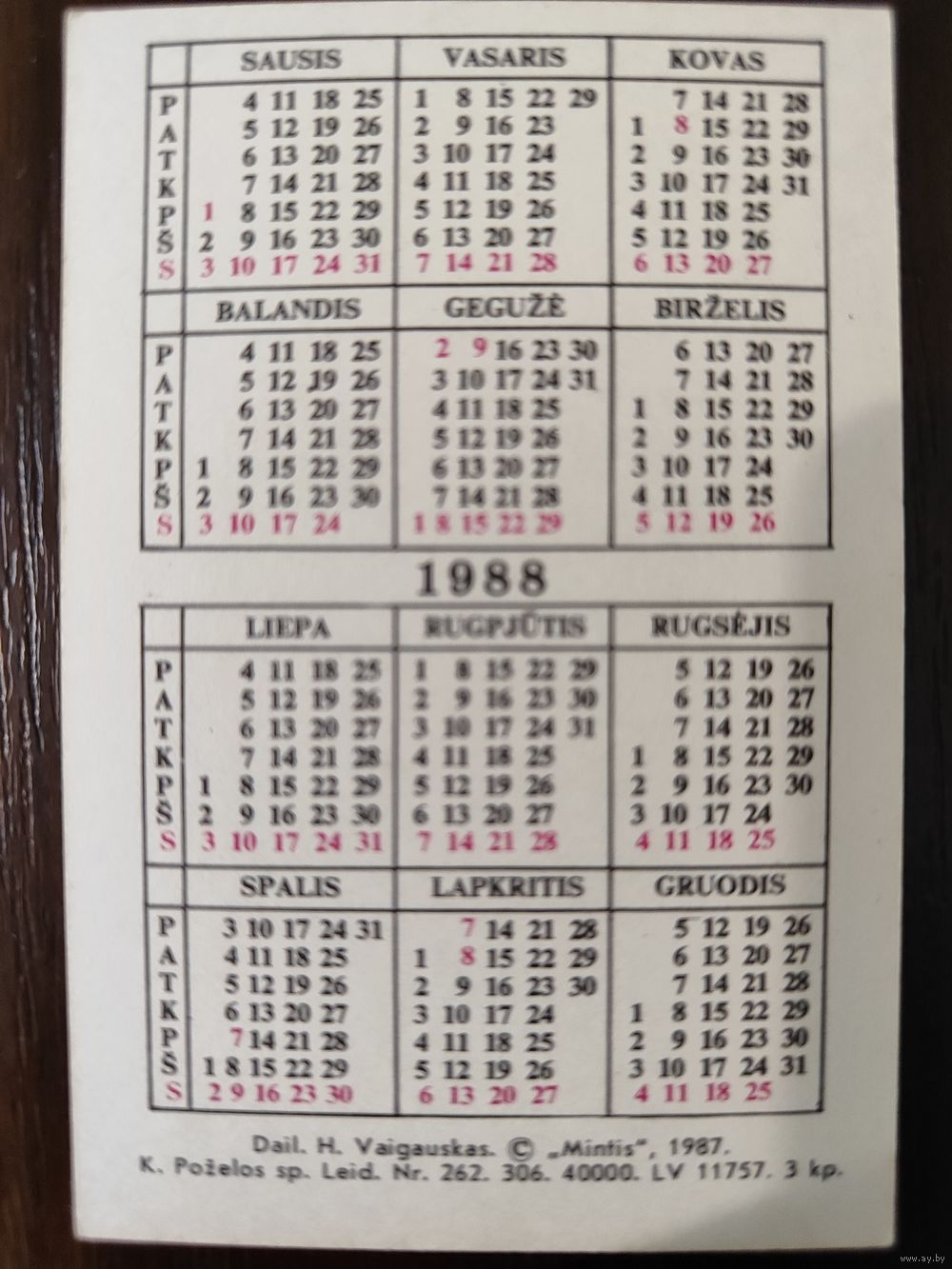 Календарик карманный 1988г