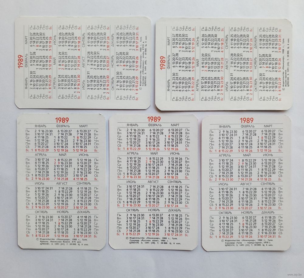 Календарик карманный 1989 год. Тула.