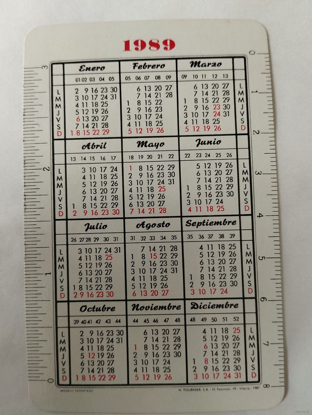 Календарик карманный 1989г. Испания.Рекдама швейной машинки . Календарик в отличном состоянии.