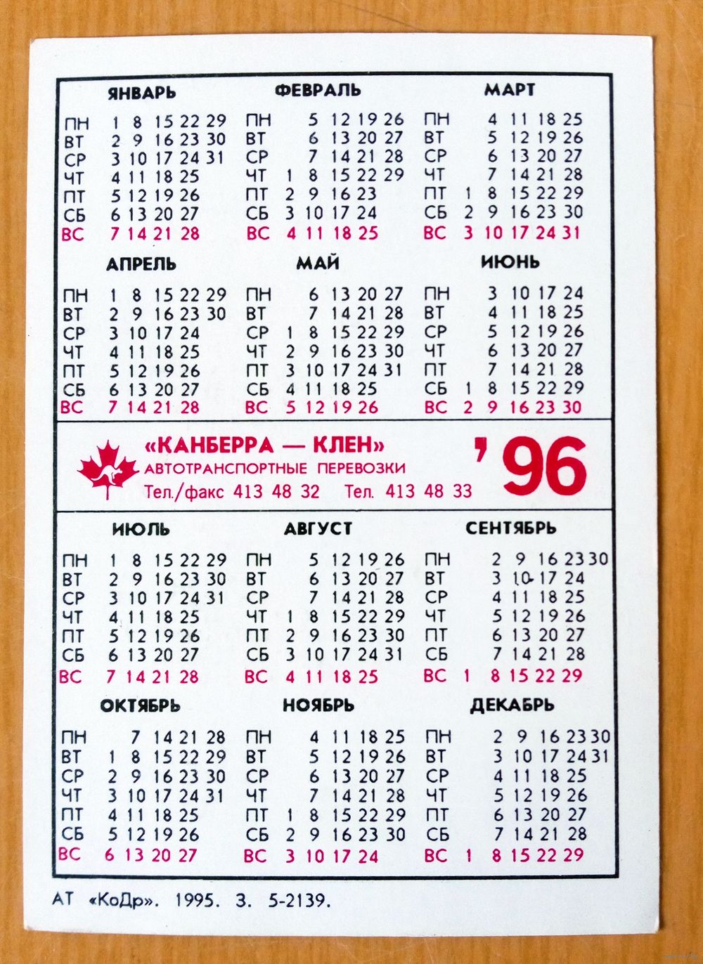 Календарик карманный 1996 Автомобили. Транспорт.
