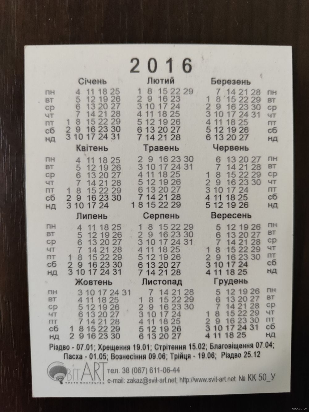Календарик карманный 2016г