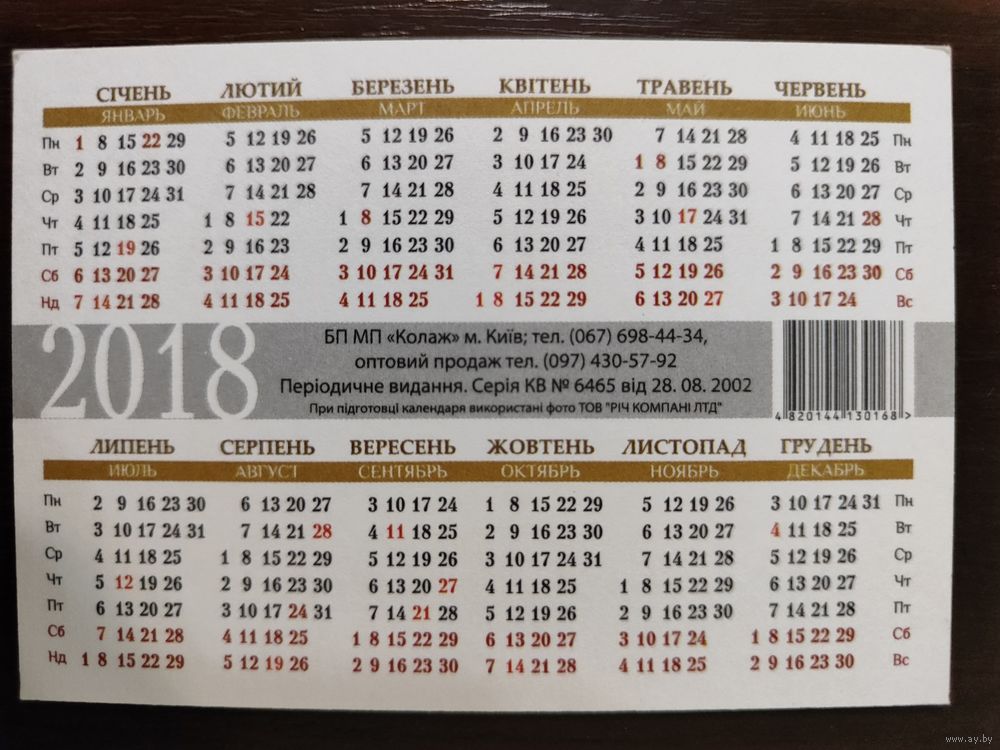 Календарик карманный 2018г
