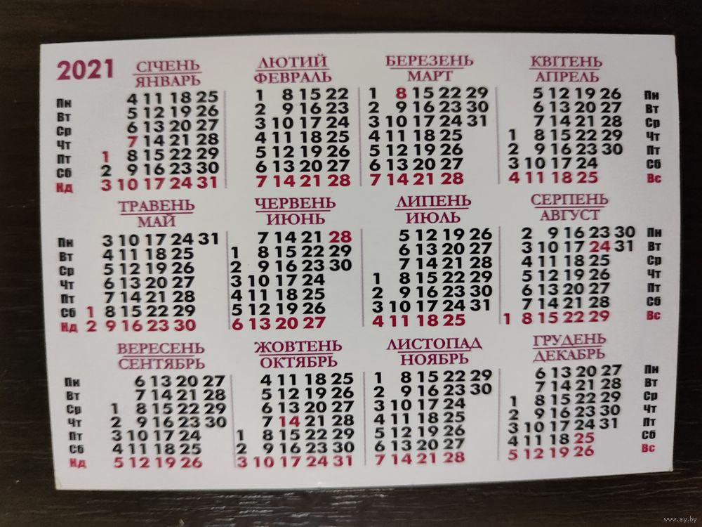 Календарик карманный 2021г