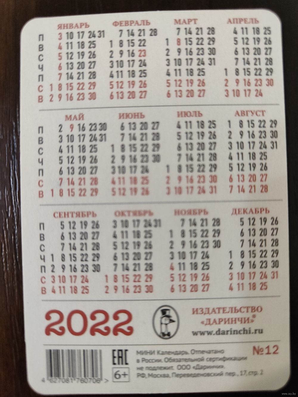Календарик карманный 2022г Новый год