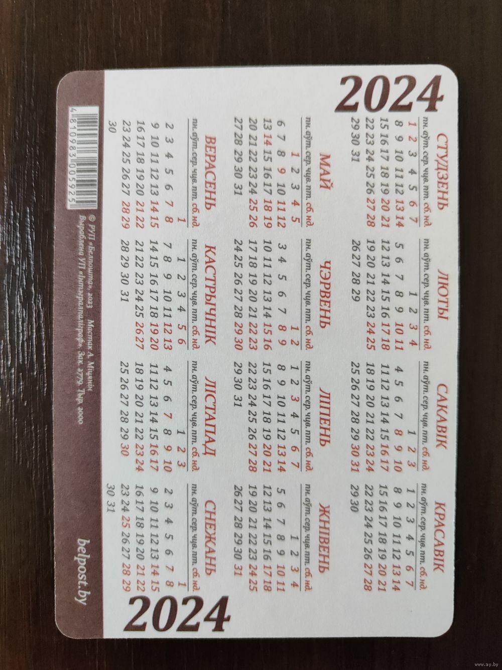 Календарик карманный 2024г