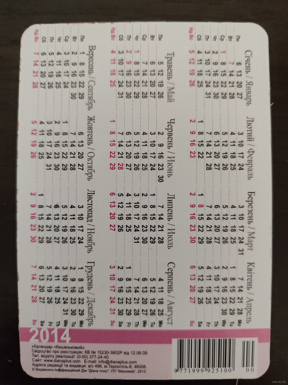 Календарик карманный