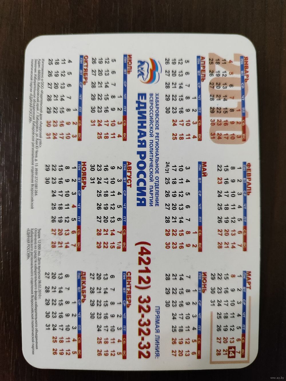 Календарик карманный