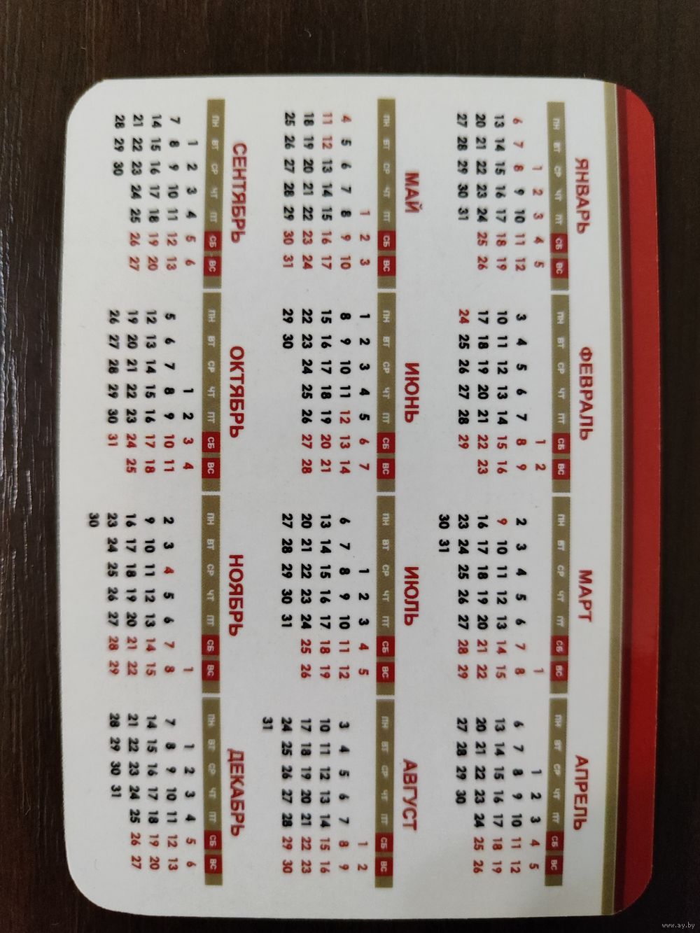 Календарик карманный