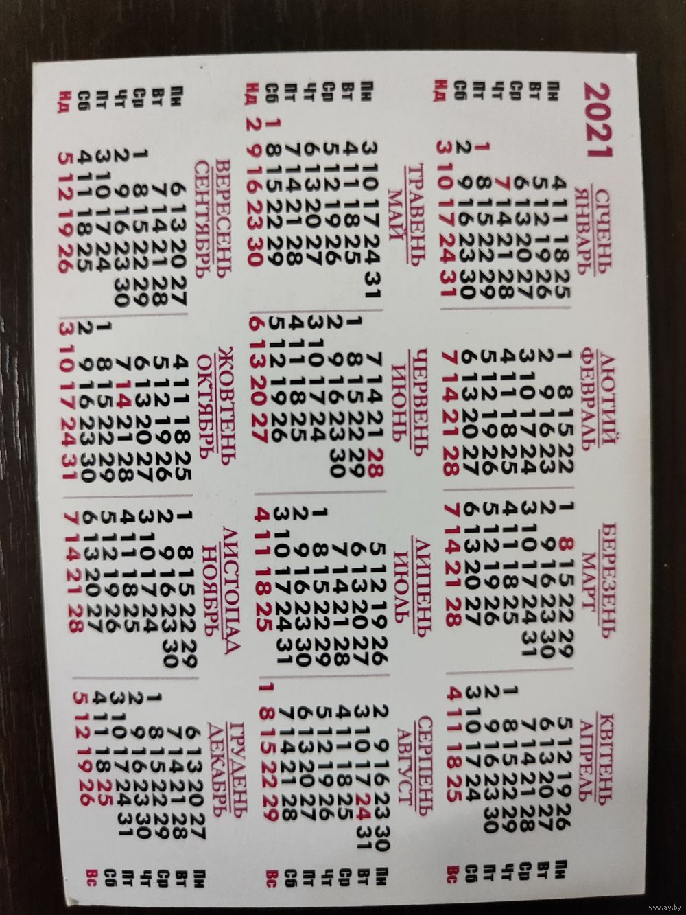 Календарик карманный