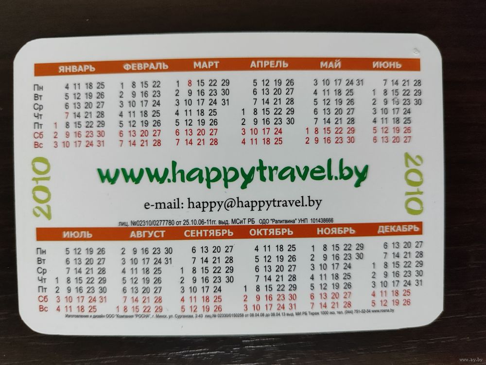 Календарик карманный