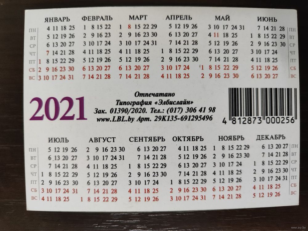 Календарик карманный