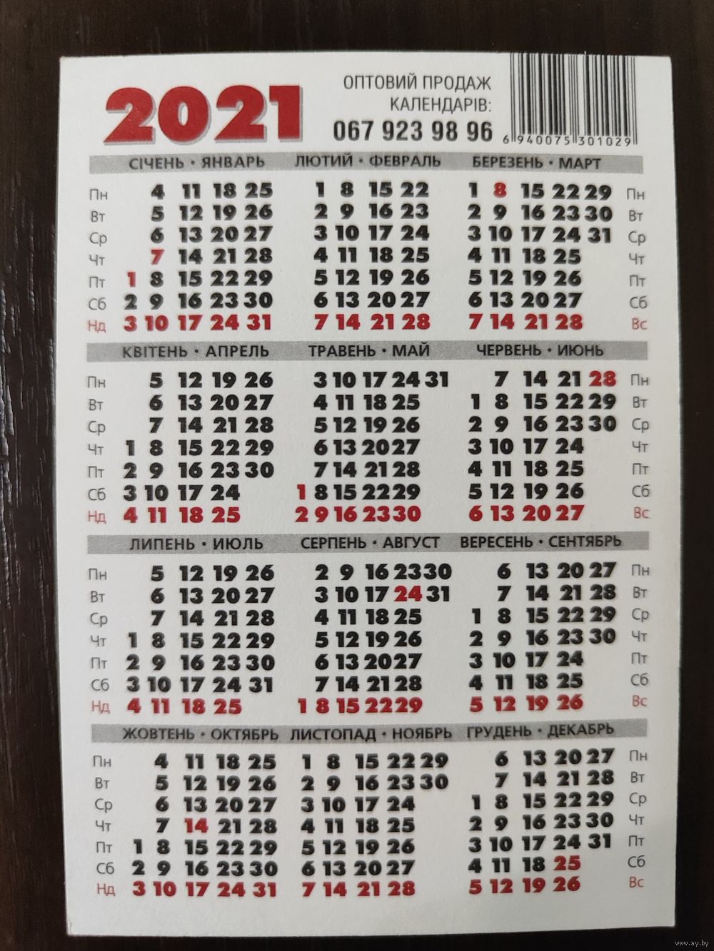 Календарик карманный