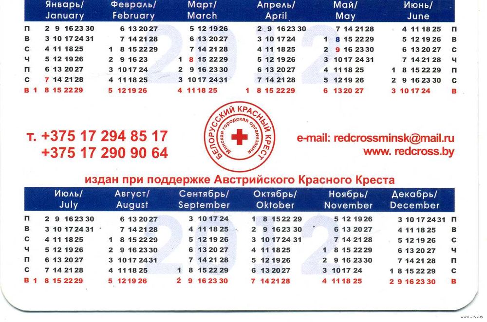 Календарик карманный Белорусский Красный Крест 2012