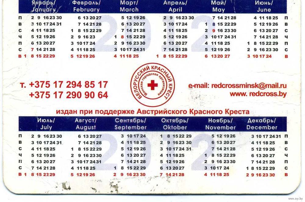 Календарик карманный Белорусский Красный Крест 2012