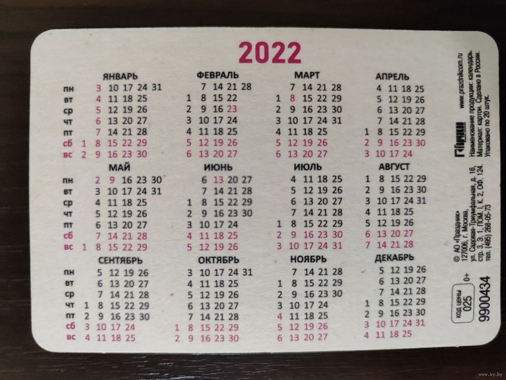 Календарик карманный Букет 2022г