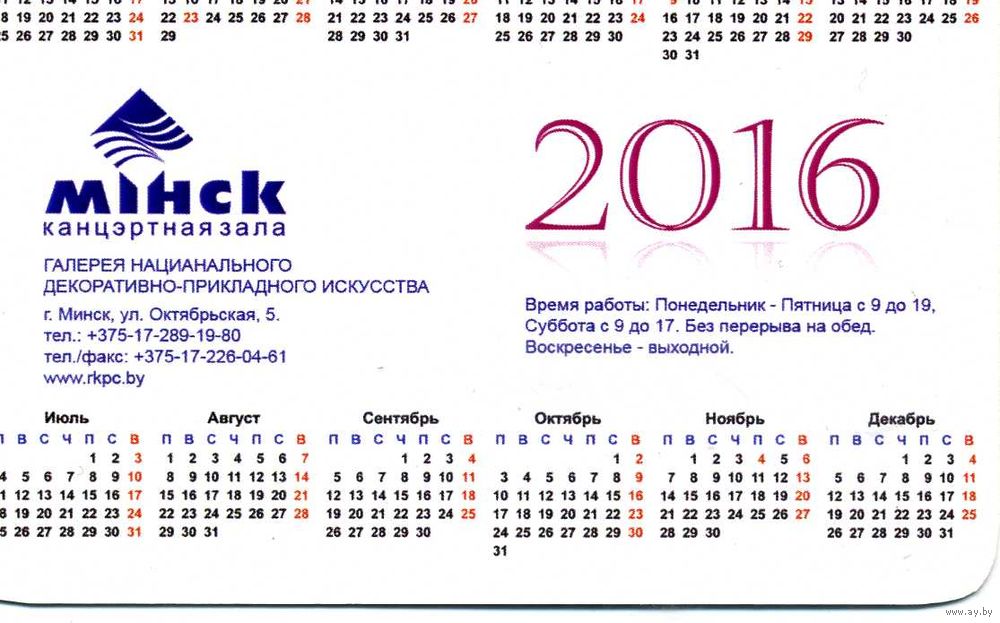 Календарик карманный Концертный зал Минск 2016