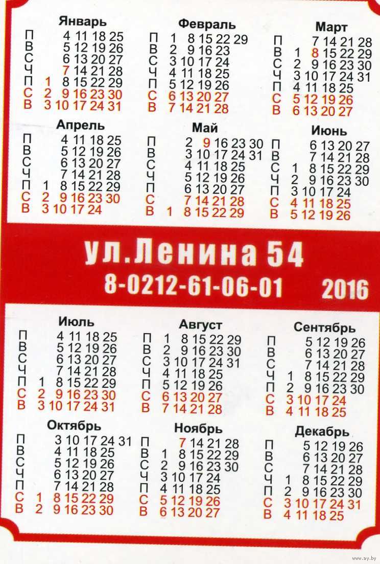 Календарик карманный Магазин Князь Винарь 2016