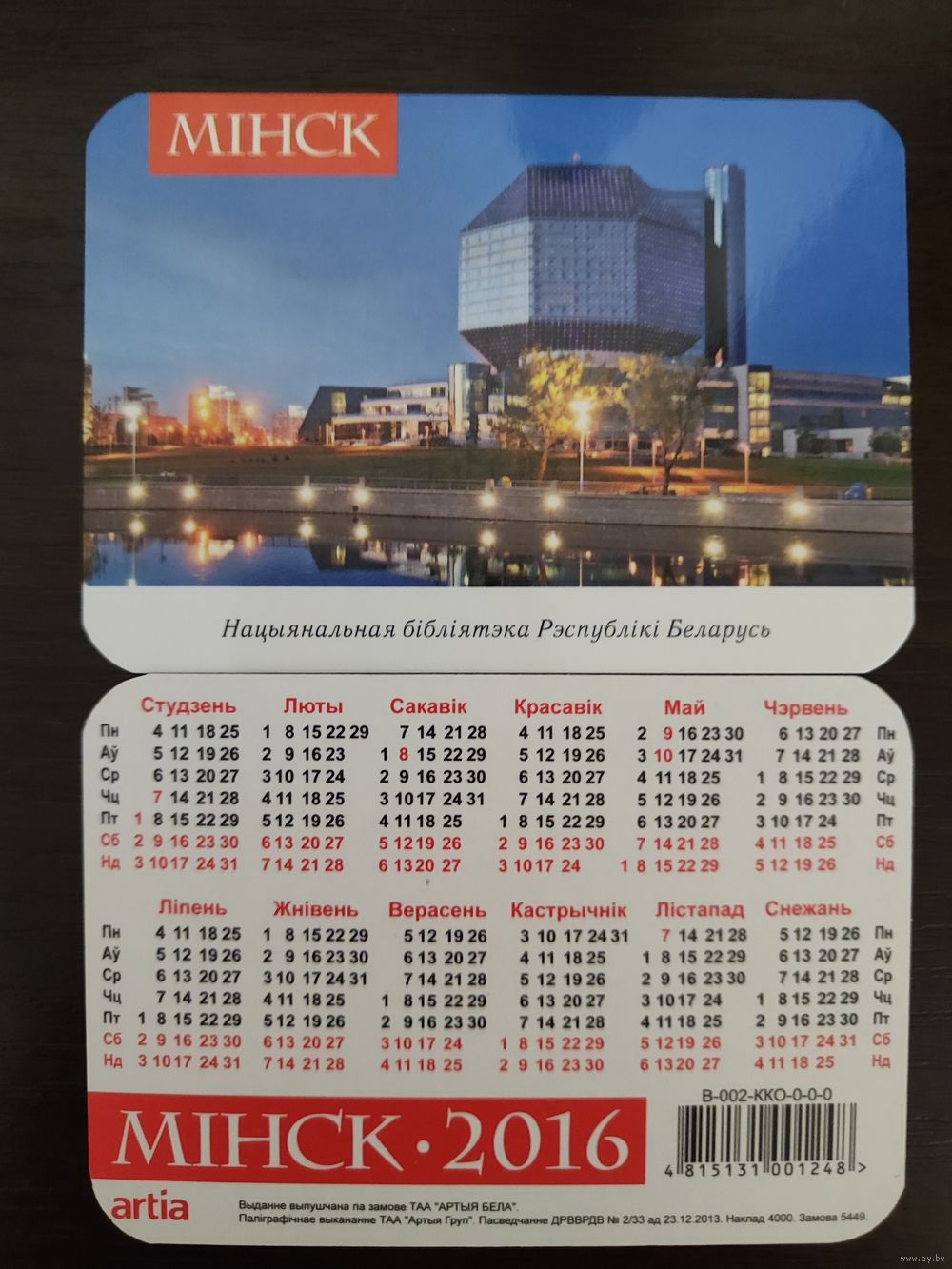 Календарик карманный Минск Библиотека 2016г