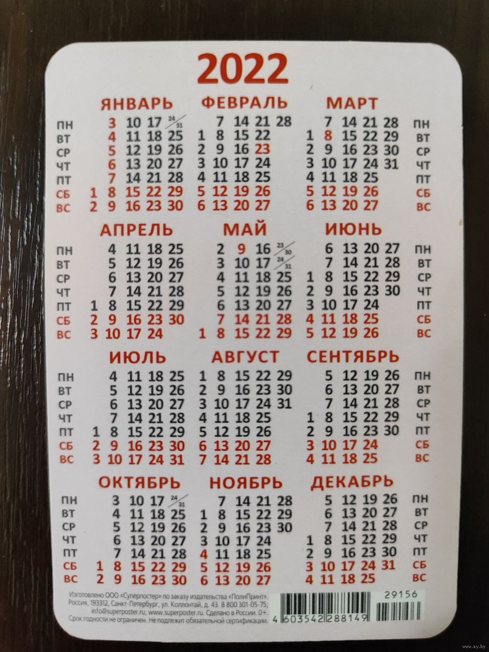 Календарик карманный Мороженое 2022г