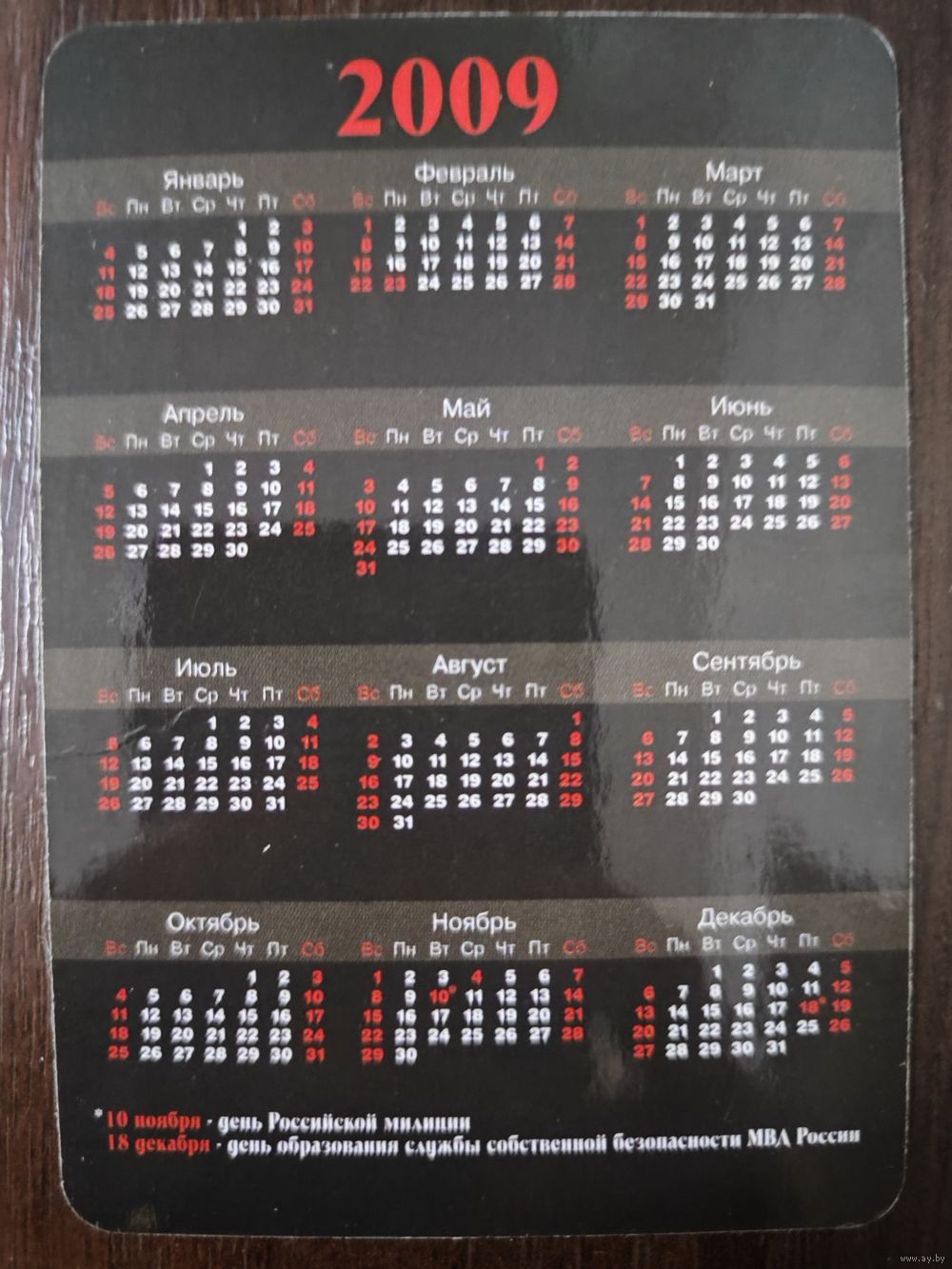 Календарик карманный МВД России 2009г