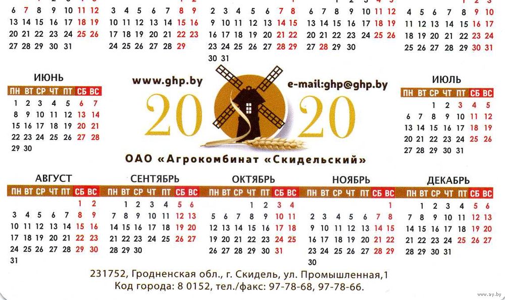 Календарик карманный ОАО Агрокомбинат Скидельский 2022