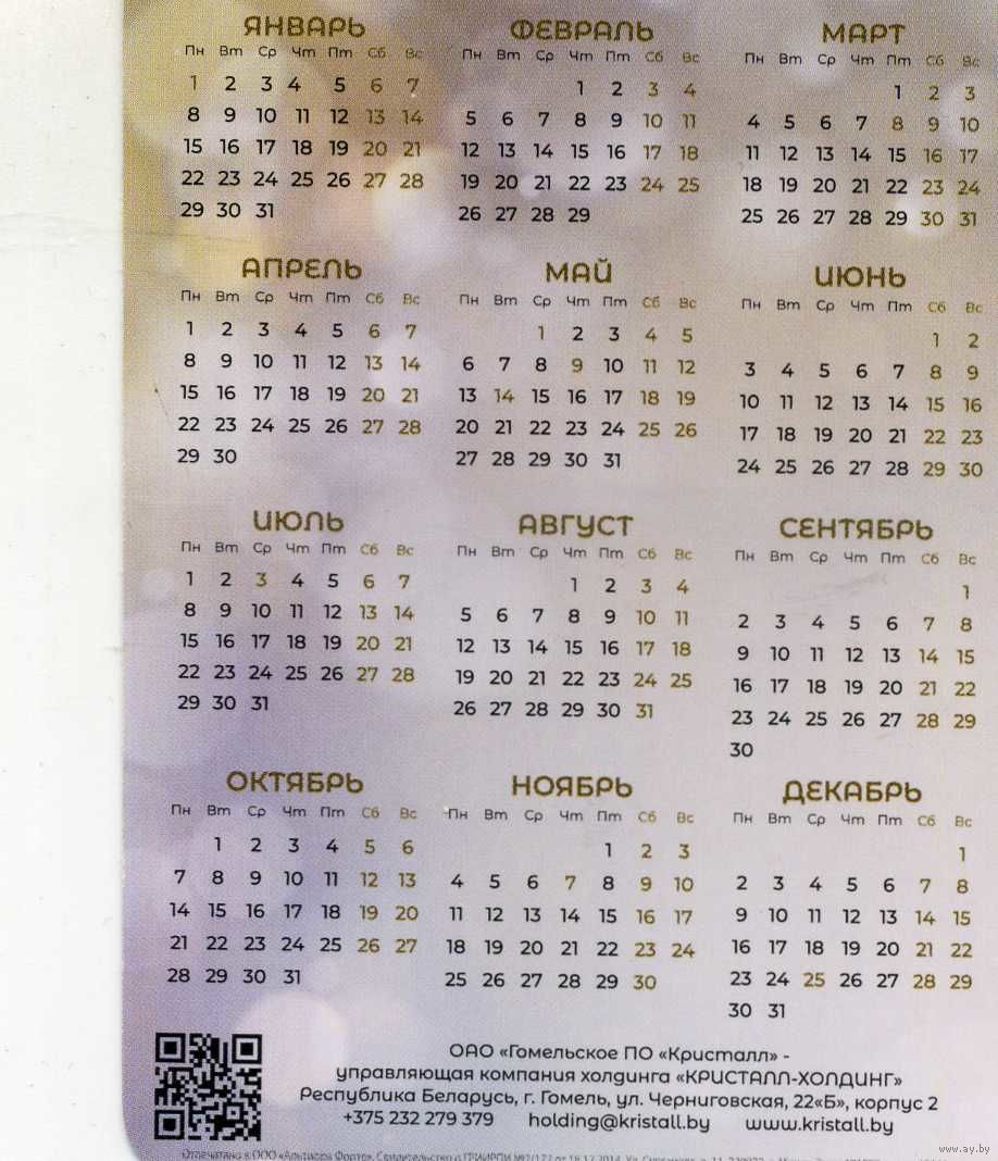 Календарик карманный ОАО Кристалл Гомель Ювелирные изделия 2024