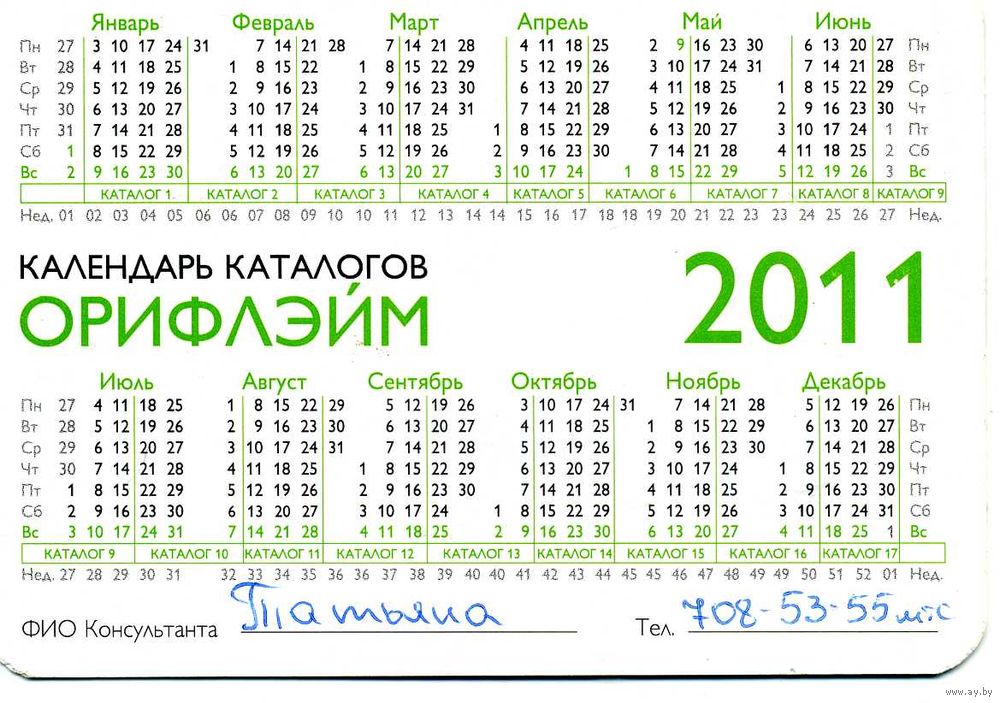 Календарик карманный ORIFLAME 2011