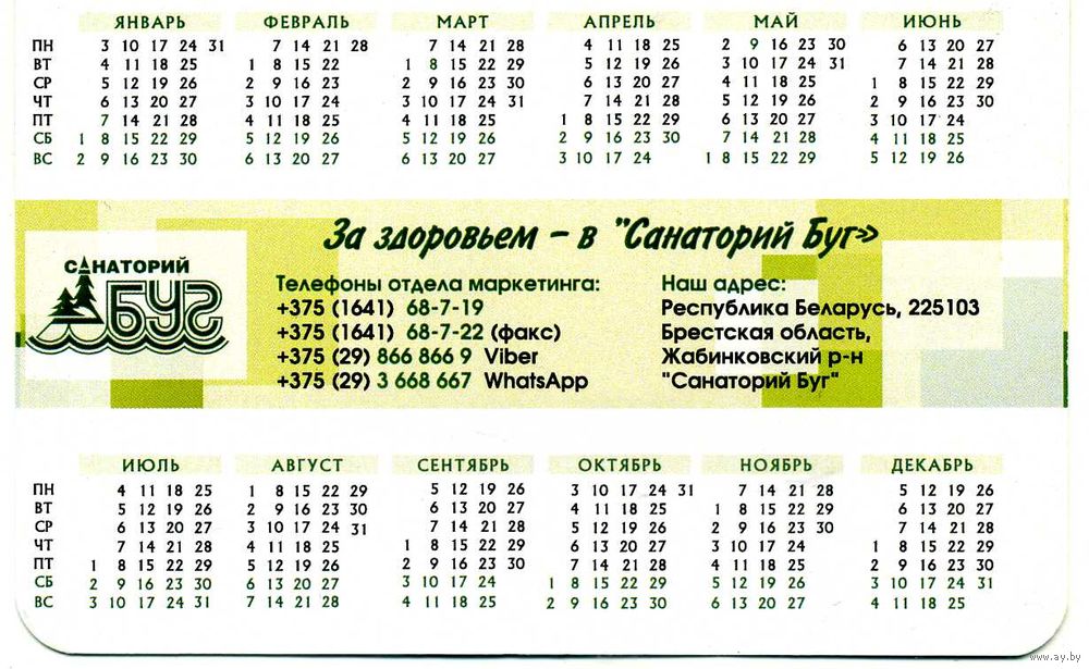 Календарик карманный Санаторий Буг 2022