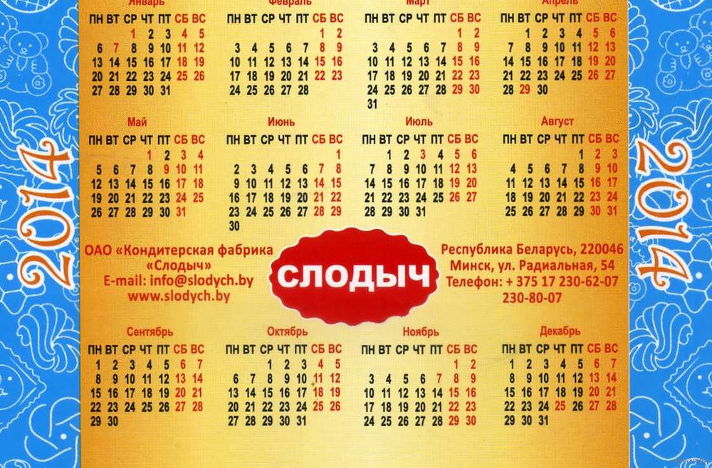 Календарик карманный Слодыч 2014