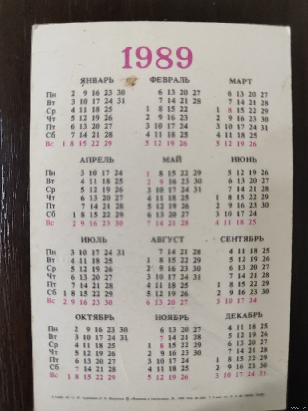 Календарик карманный страхование 1989г