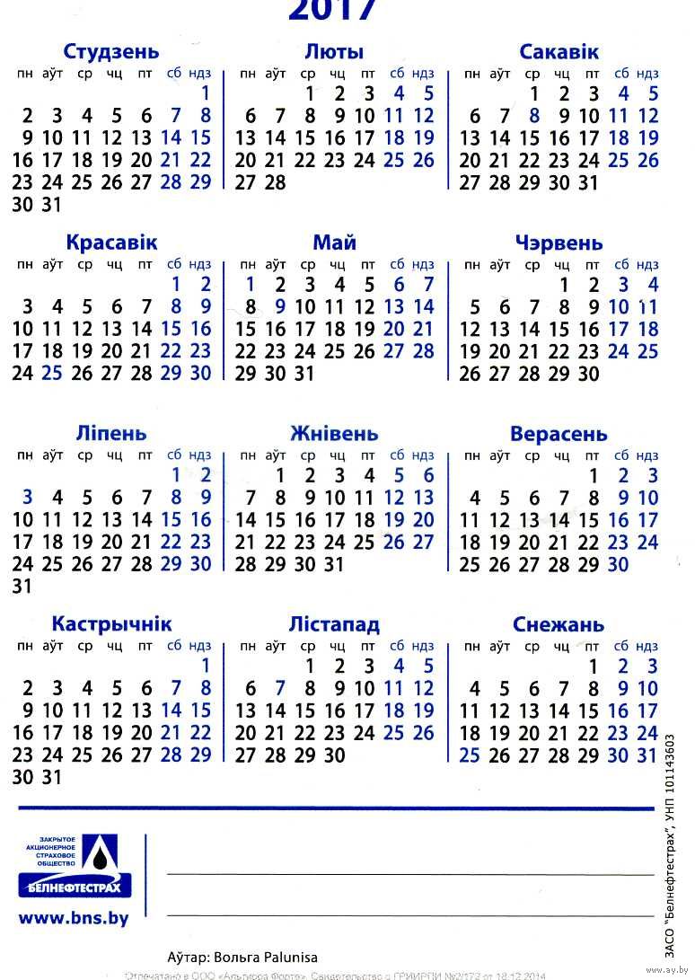 Календарик карманный Страхование Белнефтестрах 2017