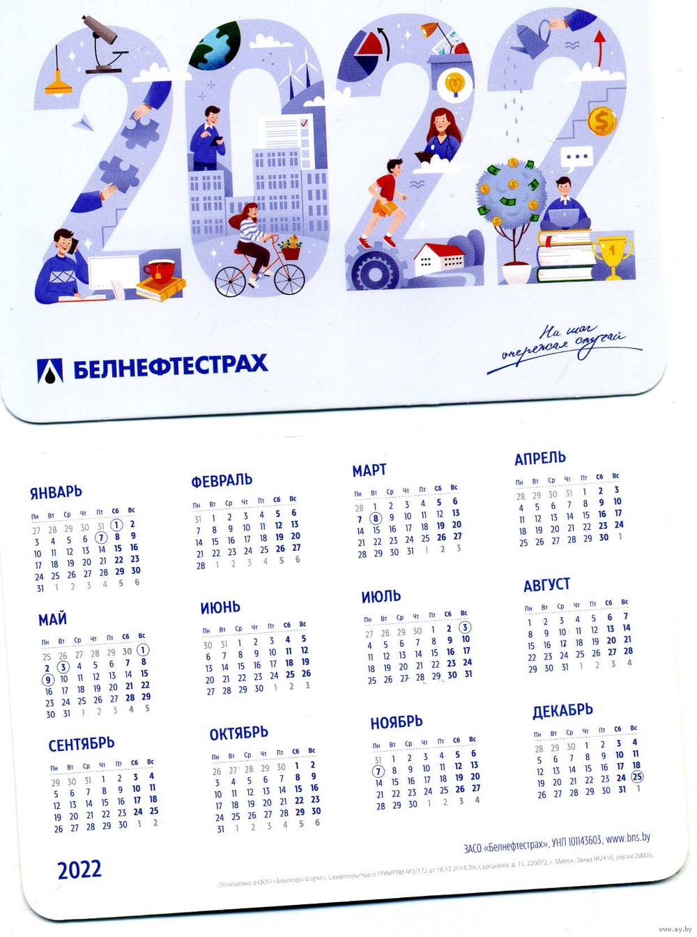 Календарик карманный Страхование Белнефтестрах 2022