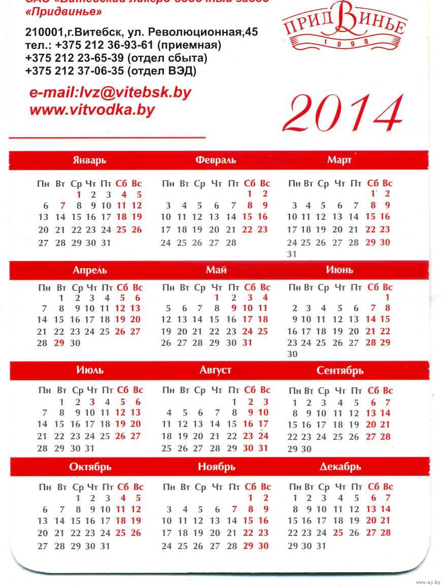 Календарик карманный Водка Придвинье 2014