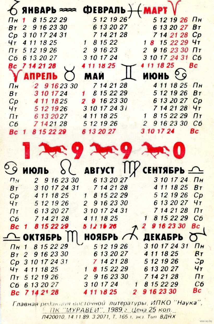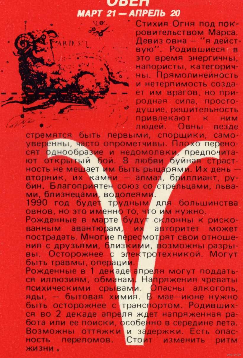 Календарик карманный Знаки Зодиака Овен 1990