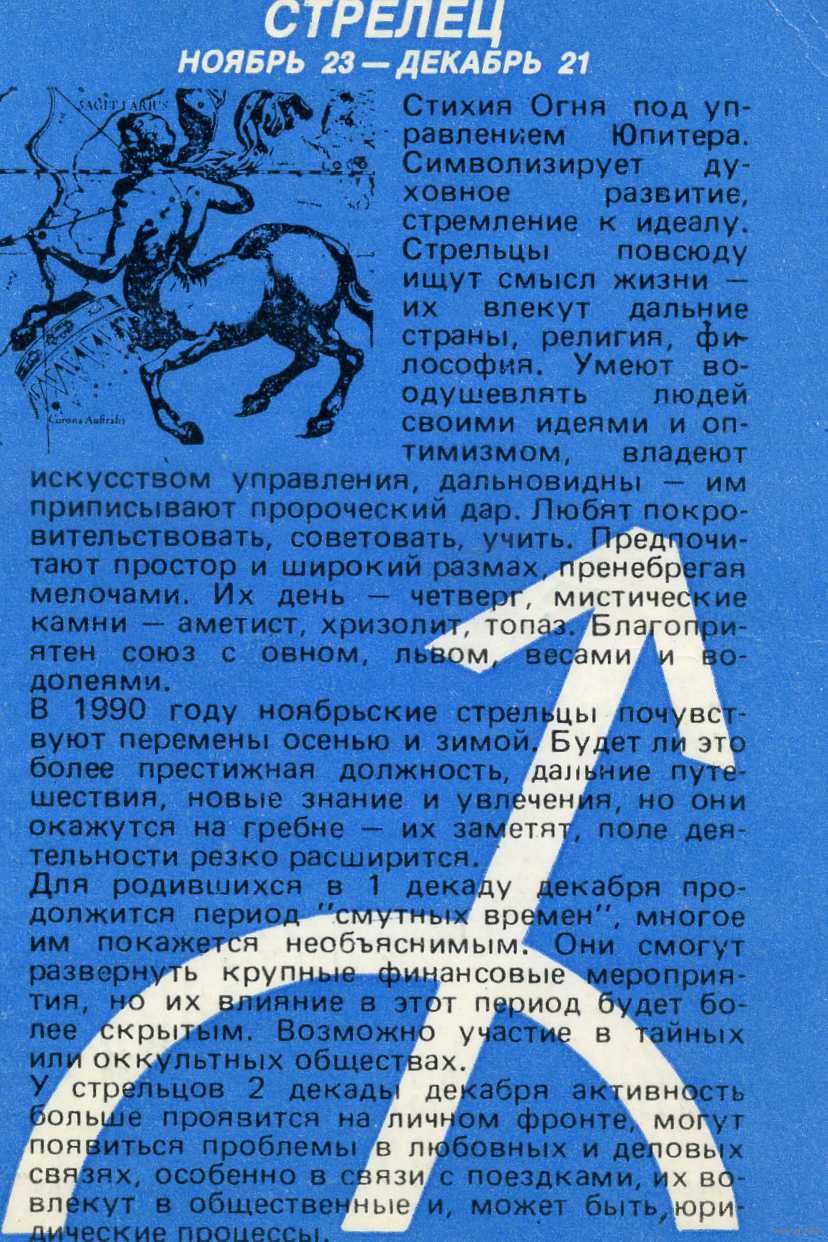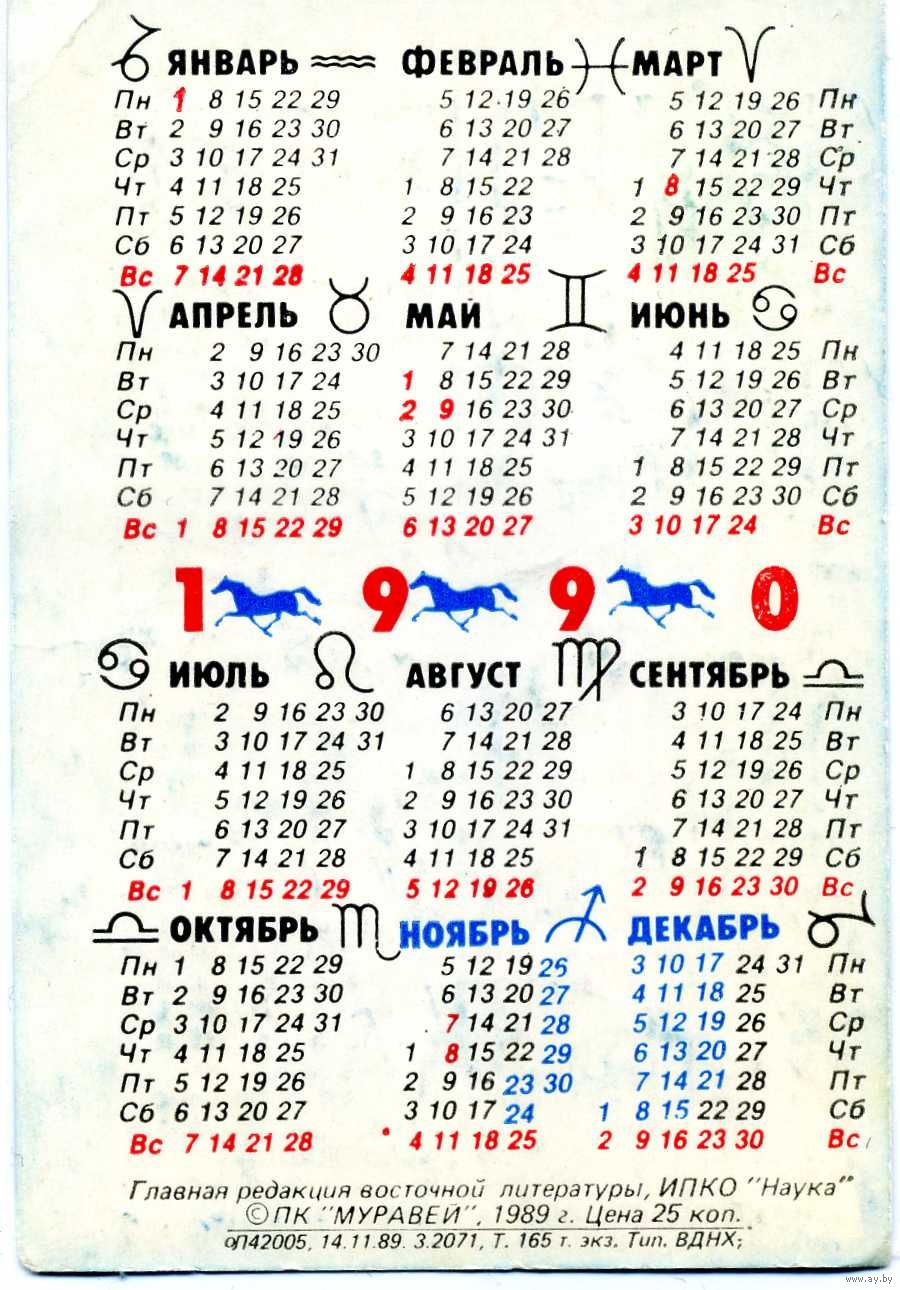 Календарик карманный Знаки Зодиака Стрелец 1990