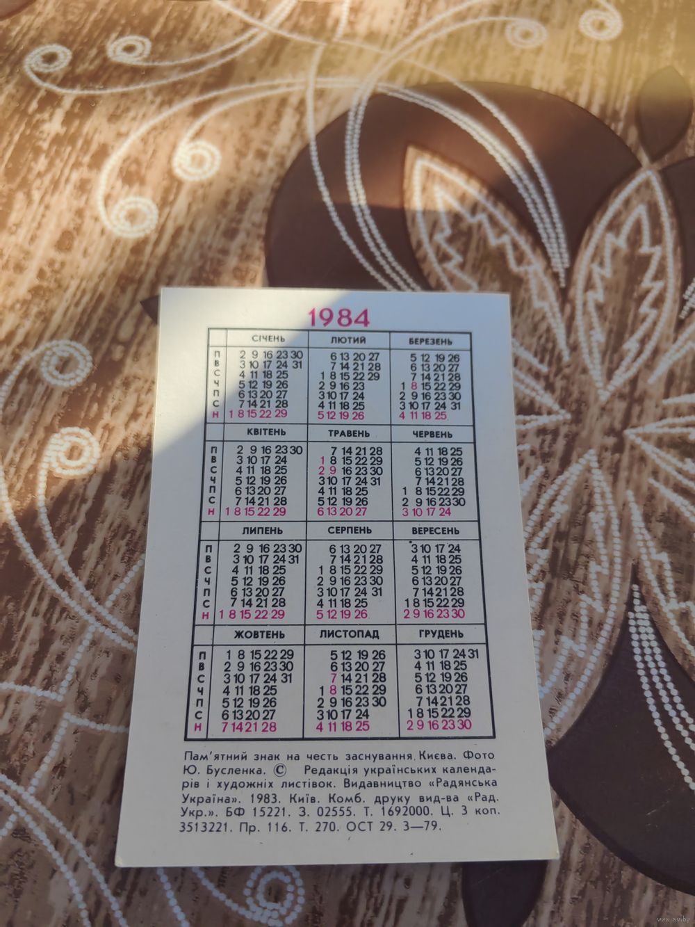 Календарик,киев,1984